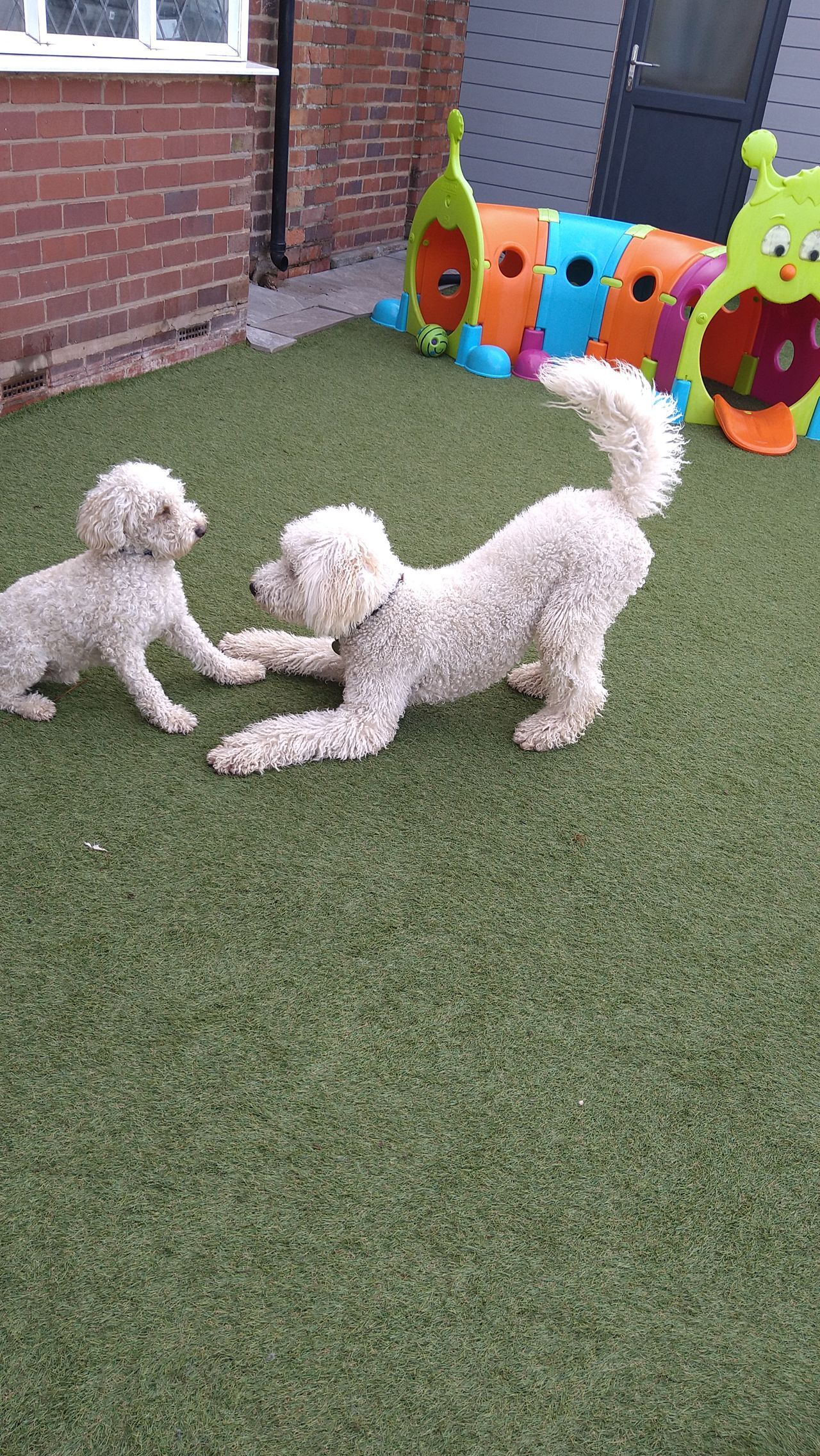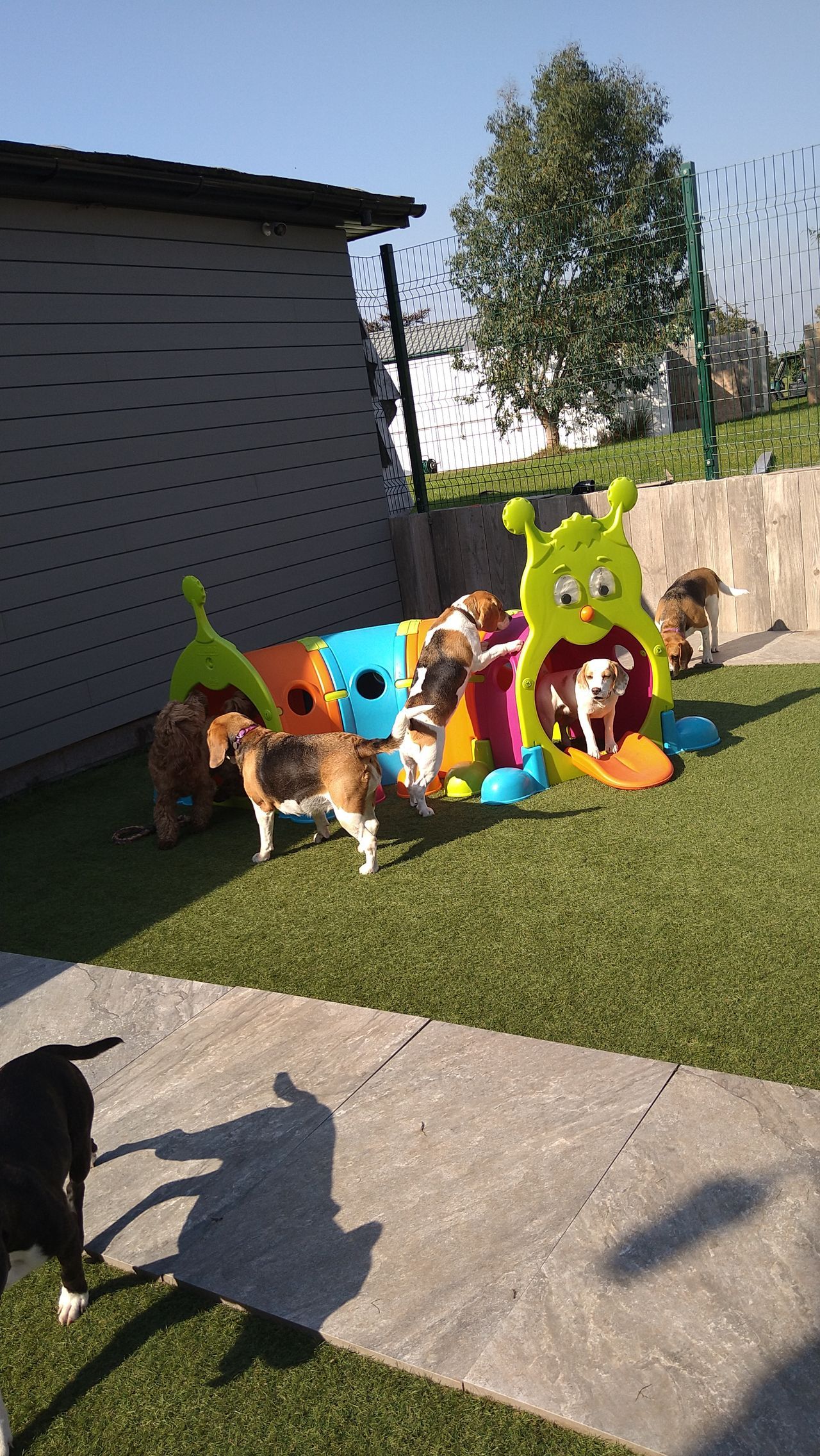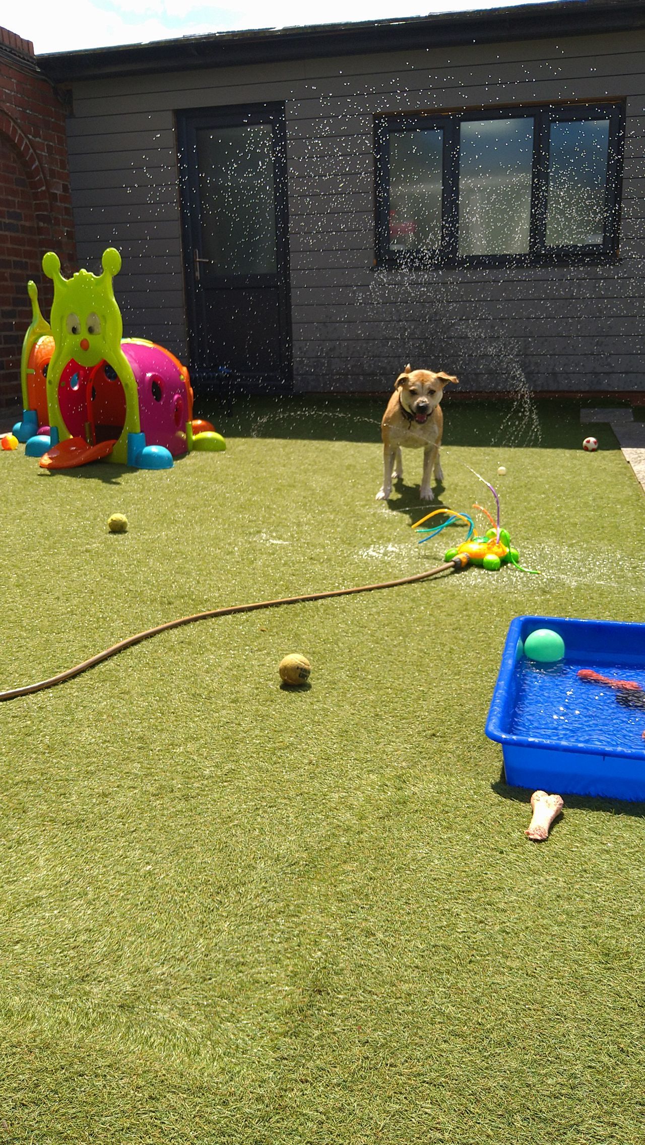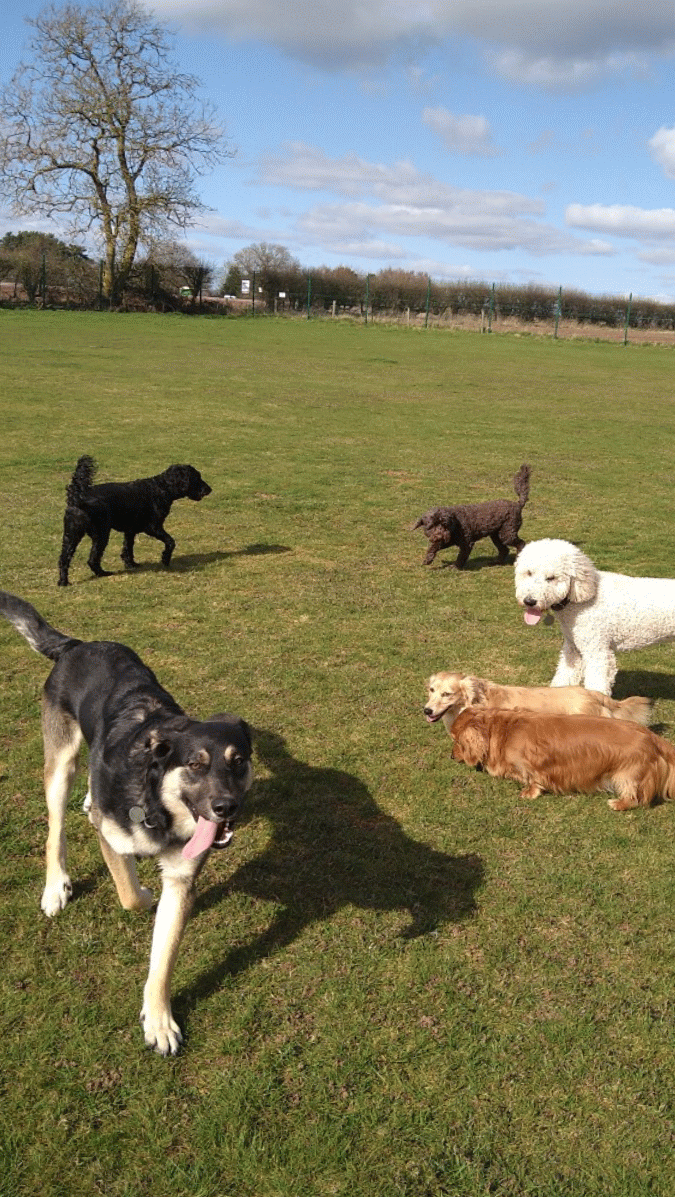 It gives doggie owners a guilt free day off to go to work or shop or play themselves. Only to realise that their dogs had the best day out too. The dogs are frantic, pulling from the boot of the car to come in, they go home happy and tired after having endless fun with all their like minded dog friends, they have two to three long bursts of fun on our huge walking field and are supervised playing with their friends in our two separate astroturf play areas.